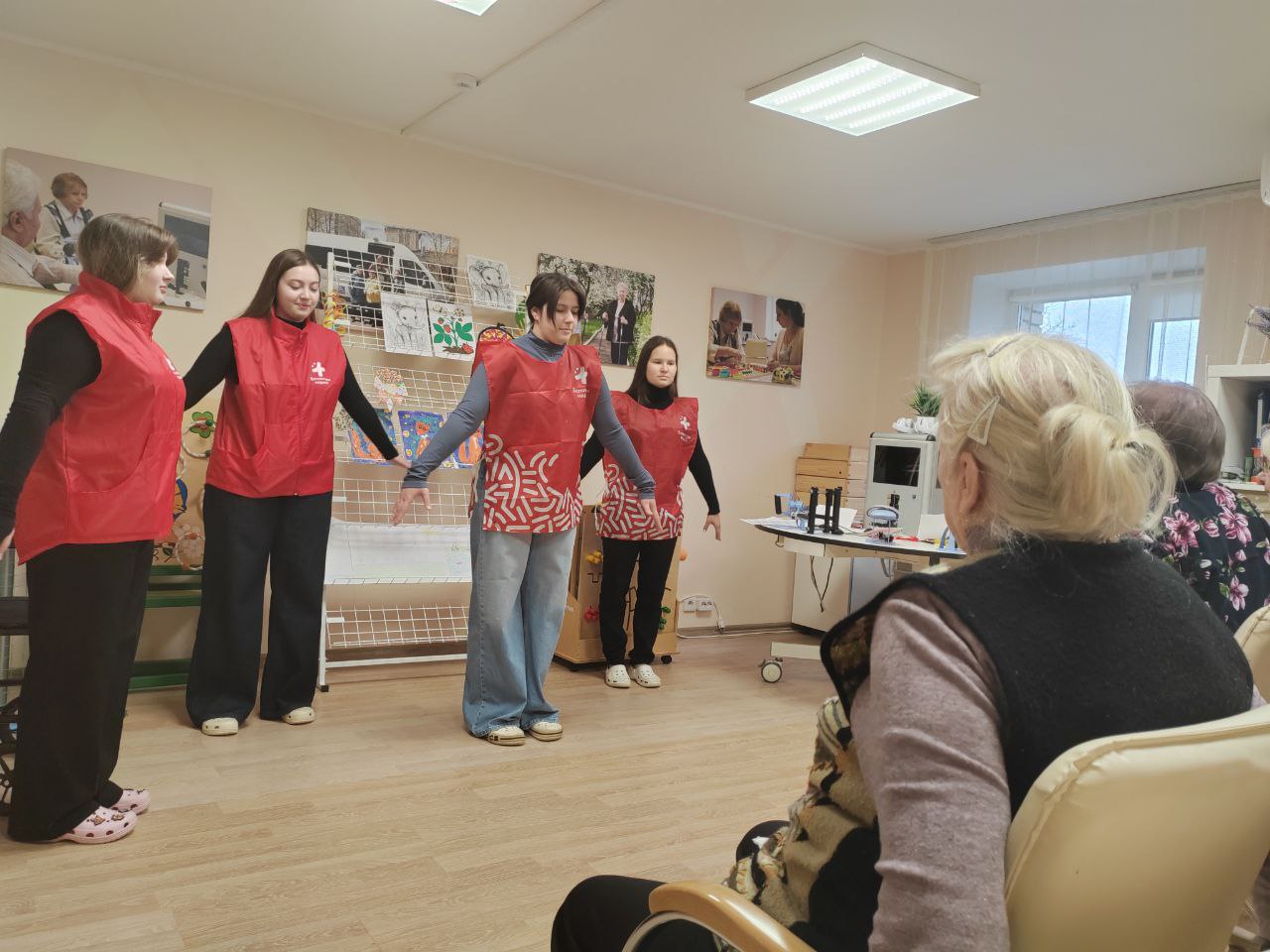 26 ноября 2025 года волонтёры-медики, члены студенческого отряда «Рука помощи» Владимирского базового медицинского колледжа, провели второе занятие проекта «Академия активной жизни: Формула здоровья» на базе Владимирского специализированного дома ветеранов. Мероприятие было направлено на формирование знаний и навыков, необходимых для поддержания и укрепления здоровья в сезонный период. В ходе встречи волонтёры ознакомили жителей ОДП с заболеваниями ОРВИ и гриппа, обсудили рациональный режим дня с достаточным отдыхом, предоставили рекомендации по сбалансированному питанию и умеренной физической активности, а также показали участникам проекта мастер-класс по проведению утренней зарядки для пожилых людей.