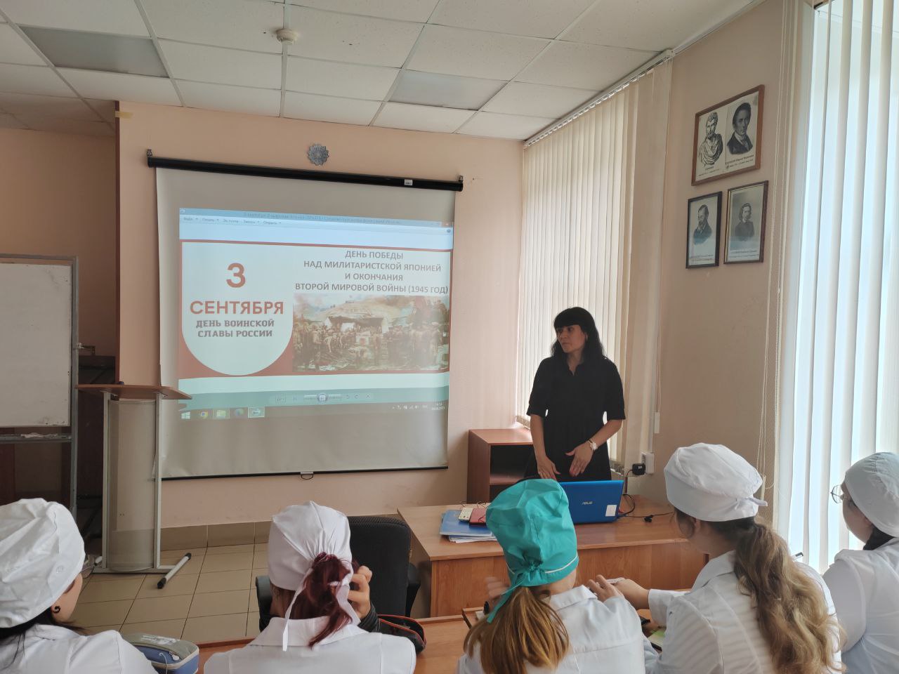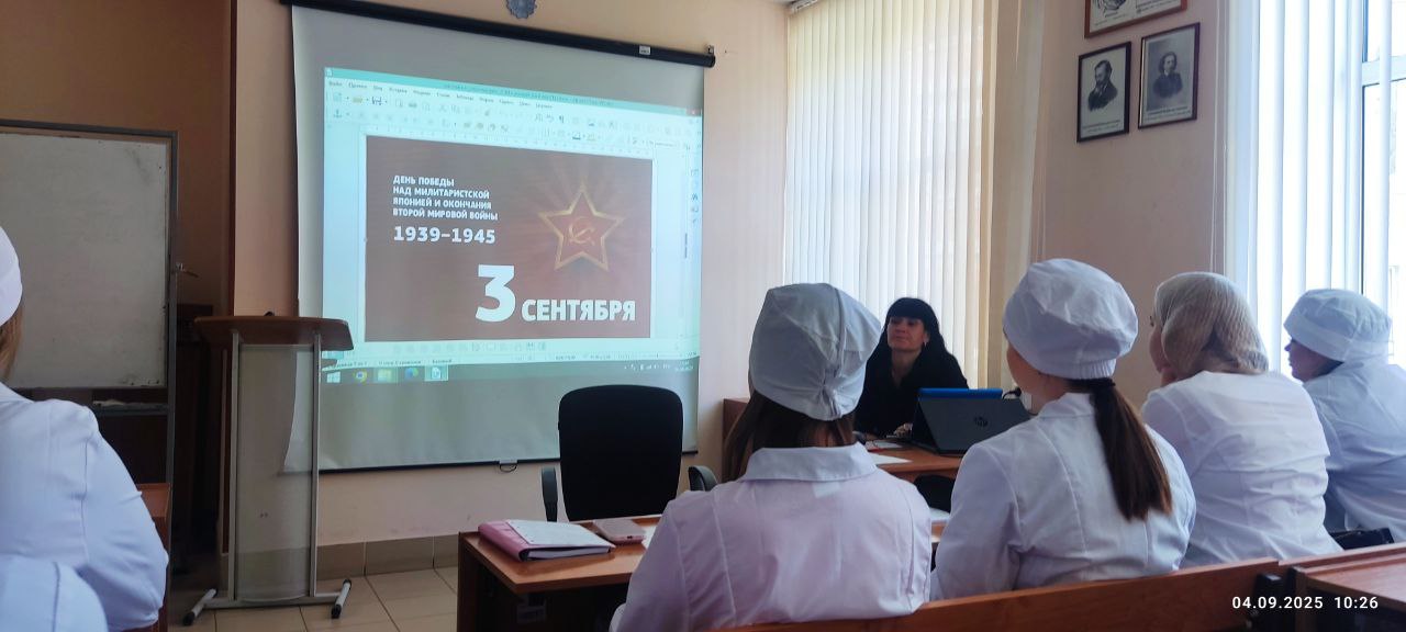 В память о трагических событиях того времени и с целью сохранения исторической правды 4 сентября 2025 года во Владимирском базовом медицинском колледже был проведен исторический час по данной теме. Обучающиеся вспомнили о великом подвиге наших предков, которые ценой своей жизни защитили мир и свободу.