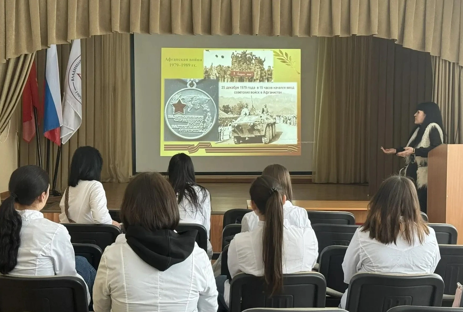 12–13 февраля 2026 года во Владимирском базовом медицинском колледже состоялись информационные мероприятия, посвящённые Дню памяти россиян, выполнявших службу за рубежом. Цель уроков — напомнить студентам о подвигах соотечественников, исполнивших важные миссии вдали от Родины, проявивших смелость и преданность своей стране. Мероприятия начались с исторического экскурса, охватывающего ключевые моменты участия советских и российских военнослужащих в зарубежных конфликтах и миротворческих акциях. Были освещены такие значимые события, как Афганская война, поддержка дружественных государств Африки и Азии, а также вклад российского контингента в операции ООН. Студенты увидели уникальные архивные фото и видеоматериалы, воссоздавшие обстановку той эпохи и показавшие всю сложность военной службы. Эти уроки оставили неизгладимый след в душах молодых слушателей, укрепили чувство уважения и гордости за соотечественников, ставших символом доблести и патриотизма.