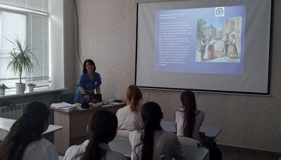 29 мая 2025 года во Владимирском базовом медицинском колледже состоялись увлекательные уроки для студентов, приуроченные к знаменательной дате – 85-летию системы среднего профессионального образования нашей страны на тему «Эволюция российских техникумов и колледжей: прошлое, настоящее, будущее».