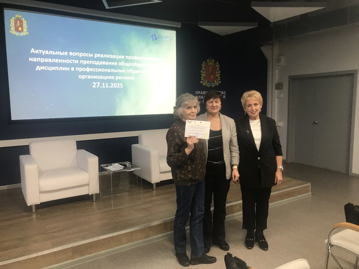 27 ноября 2025 года состоялся круглый стол «Актуальные вопросы реализации профессиональной направленности преподавания общеобразовательных дисциплин в профессиональных образовательных организациях региона», организатором которого выступила кафедра профессионального образования ВИРО. Мероприятие прошло на площадке центра опережающей профессиональной подготовки Владимирской области. Были обсуждены вопросы современных вызовов и перспектив развития общего образования в системе СПО.