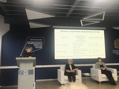 В рамках круглого стола выступили заместитель директора по учебной работе Владимирского базового медицинского колледжа Беспалова Наталия Геннадьевна и преподаватель высшей квалификационной категории, «Отличник просвещения» Тюрина Светлана Ивановна по теме: «Интеграция методики преподавания физики с общими и профессиональными компетенциями в медицинском колледже». Наталия Геннадьевна в выступлении сделала акцент на применении метода обратного проектирования в преподавании физики, химии и биологии. Данный метод позволяет сформировать знаниевый компонент профессиональной компетенции. Светлана Ивановна продемонстрировала связь физики с медициной по темам: биомеханика, кинематика. Понимание важности знаний физики в будущей профессиональной деятельности медицинской сестры является залогом здоровья.