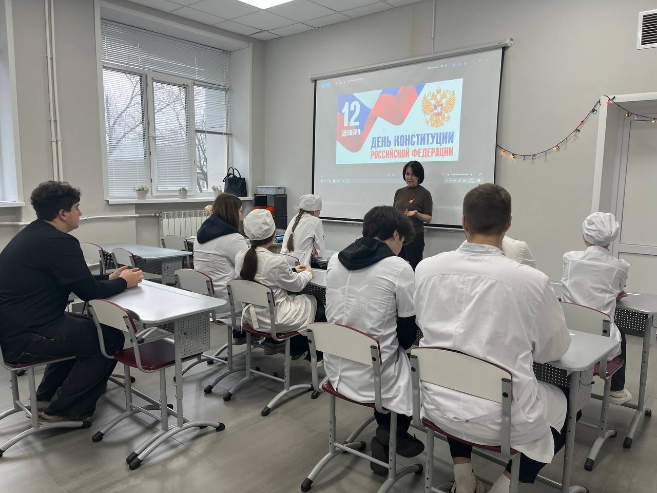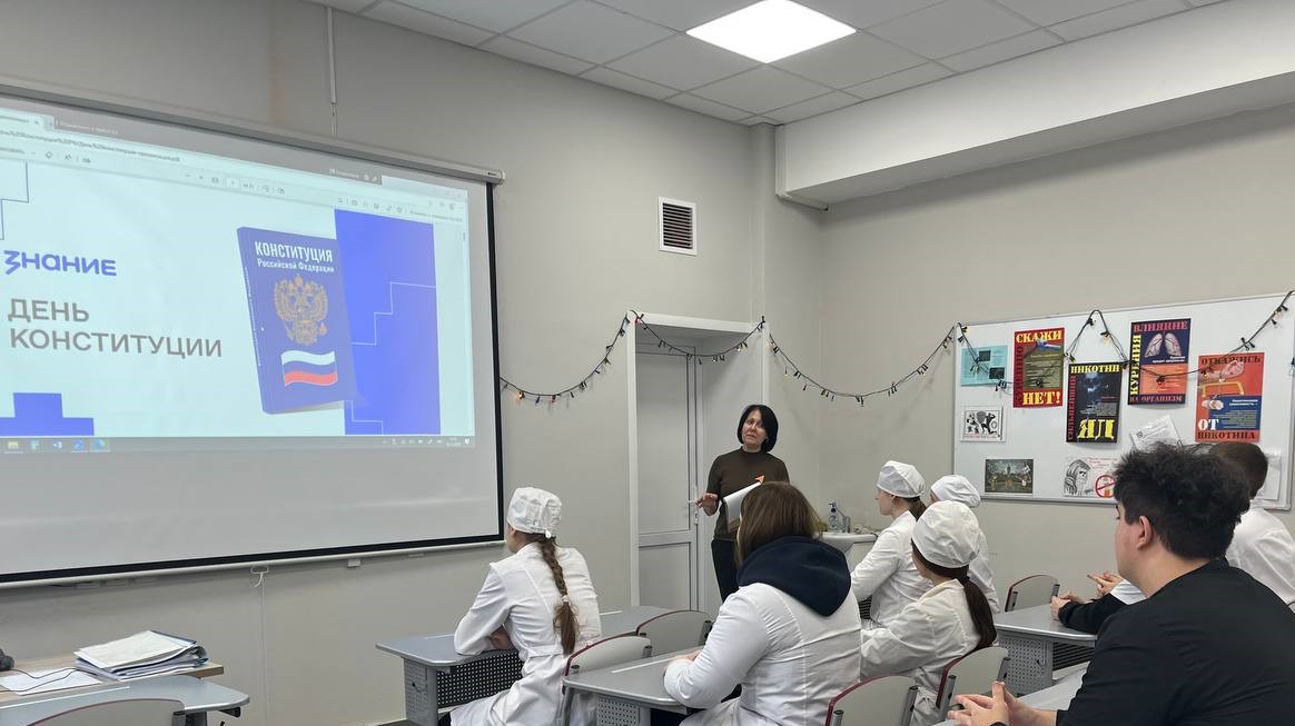 В рамках празднования Дня Конституции и его 32-й годовщины, 12 декабря 2025 года во Владимирском базовом медицинском колледже были проведены познавательный информационный урок и викторина, направленные на углубление понимания основ государственного устройства, прав и обязанностей граждан среди молодёжи. Также совместно с общественной организацией «Молодая Гвардия Единой России» был организован тематический флешмоб. В ходе этих мероприятий обучающиеся не только расширили свои знания об основном законе страны, но и познакомились с интересными фактами из истории его создания и развития. Флешмоб способствовал формированию чувства общности и гражданского самосознания среди участников. Проведённые мероприятия стали важным шагом в образовательном процессе, направленном на формирование гражданской ответственности и повышение уровня правовой культуры среди молодёжи.