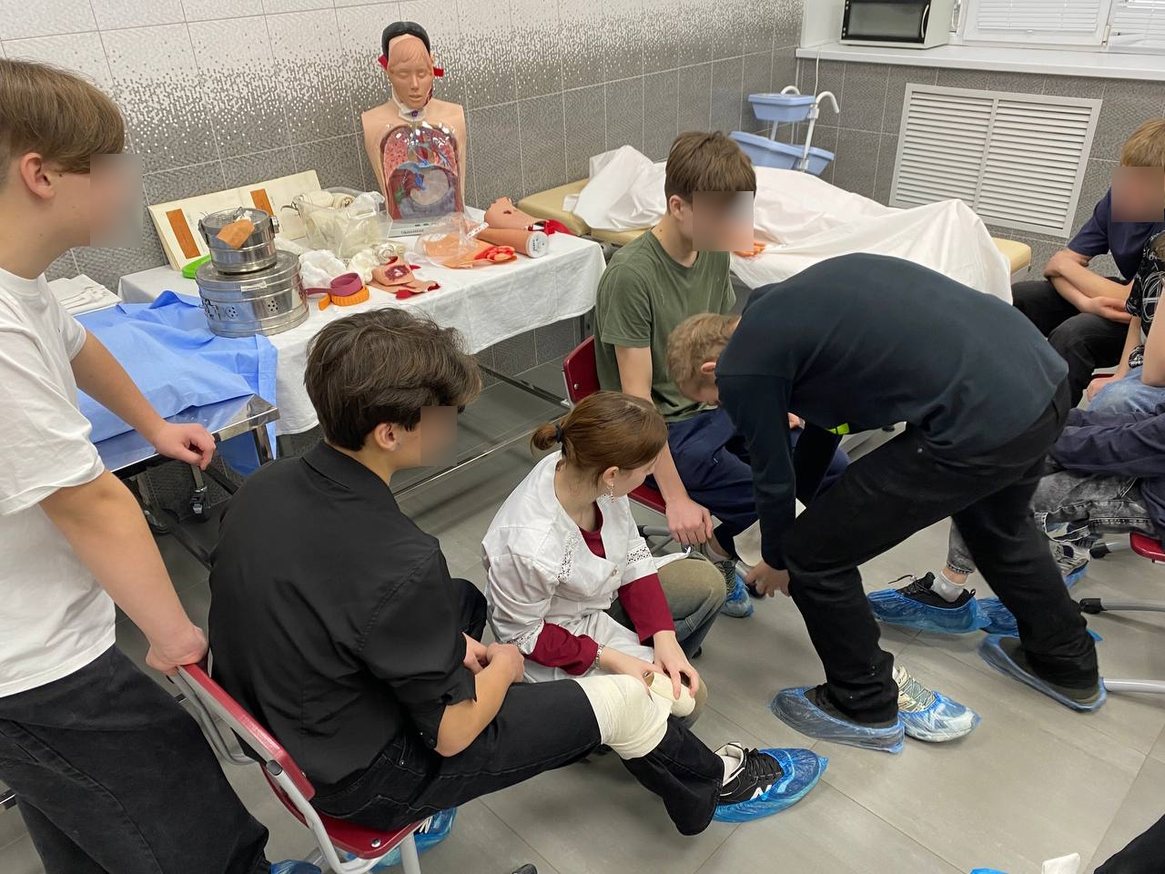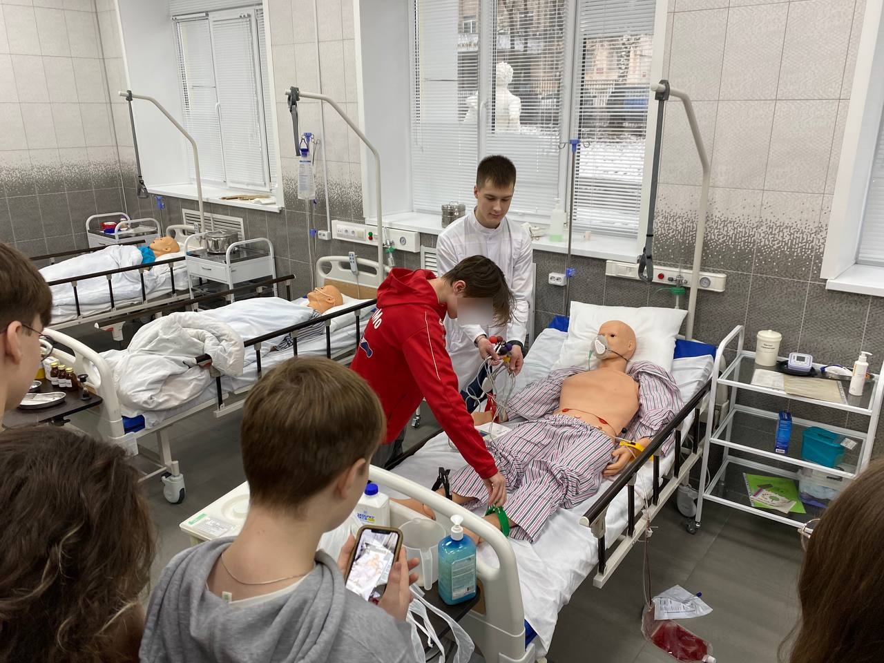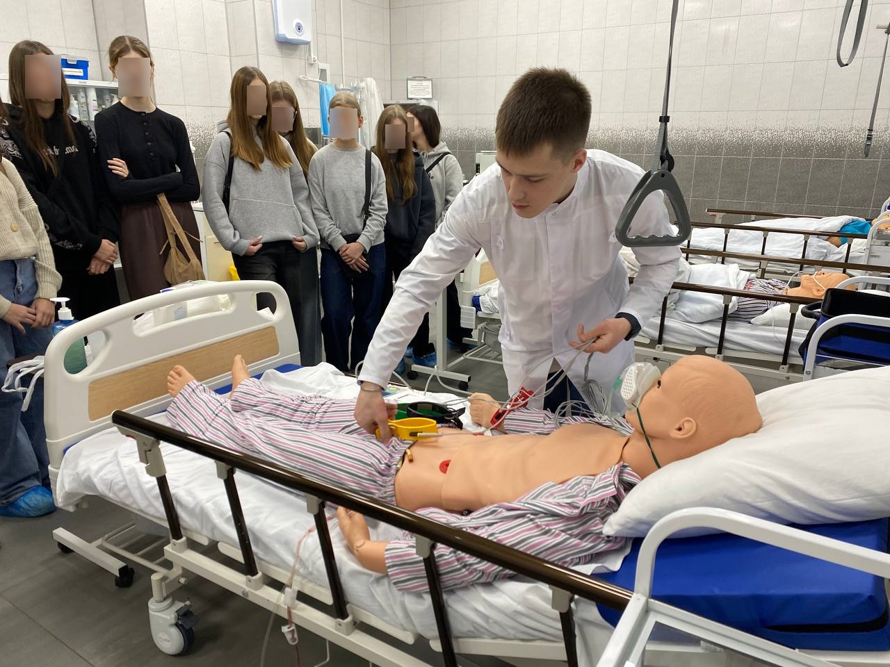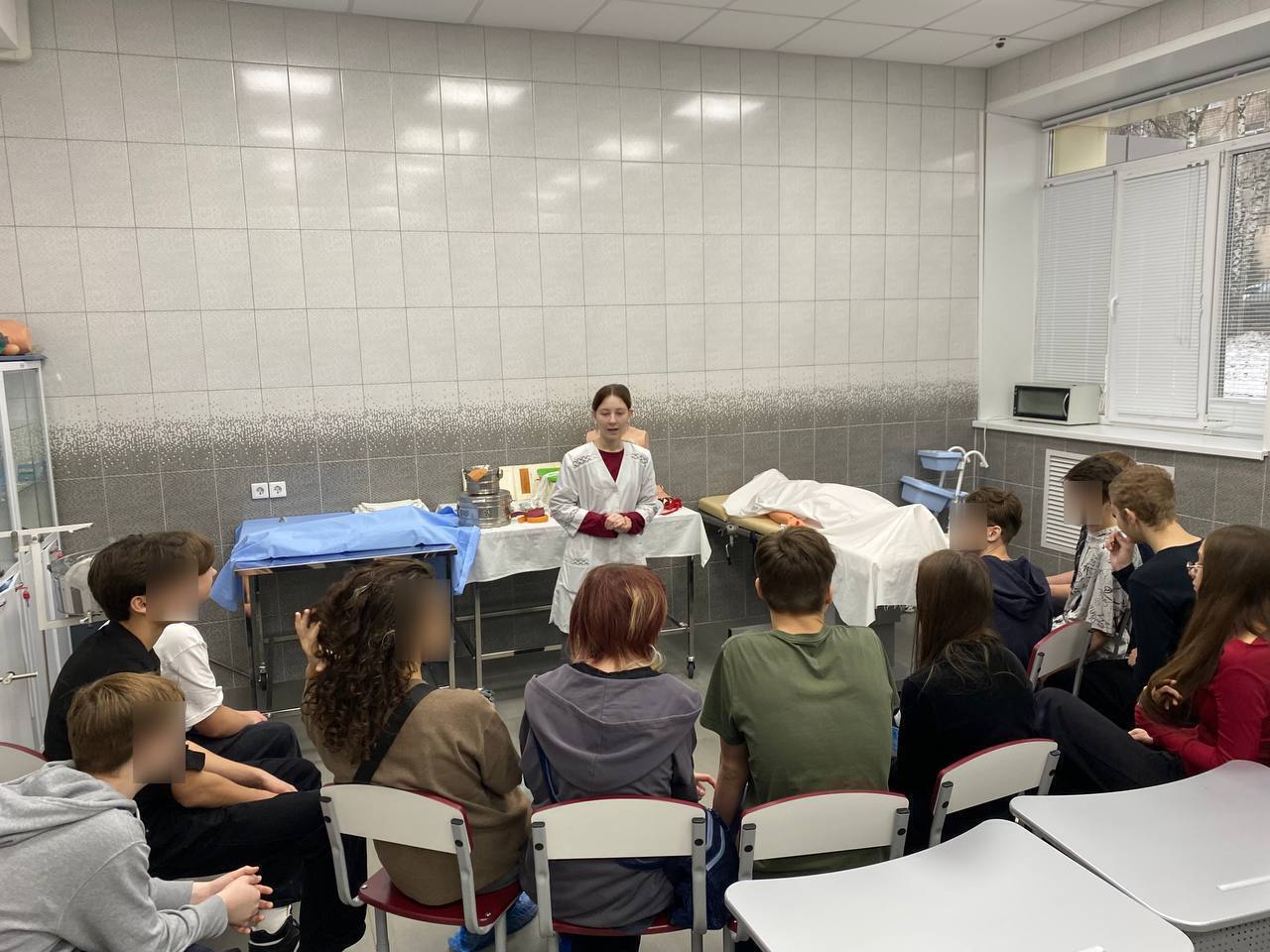 В целях повышения информированности и осознанного выбора будущей профессии и учебного заведения, 18 декабря 2025 года в ГБПОУ ВО «Владимирский базовый медицинский колледж» было проведено профориентационное мероприятие для учащихся 8-х классов МБОУ СОШ №42 города Владимира. Для школьников были организованы интерактивные площадки, где они смогли ознакомиться с колледжем, условиями поступления и предлагаемыми специальностями. Участники узнали об особенностях работы в хирургии, освоили основы десмургии, получили навыки пеленания новорождённых и основы ухода за младенцами. Им также была проведена профессиональная проба по сердечно-лёгочной реанимации. Школьники посетили кабинет практических навыков по терапии, где студенты продемонстрировали уход за маломобильными пациентами. При содействии студентов учащиеся также продемонстрировали выполнение таких манипуляций, как ЭКГ и измерение артериального давления. По завершении мероприятия школьники получили информационные буклеты и исчерпывающие ответы на свои вопросы. Колледж выражает благодарность студентам Ивану З. и Анастасии А. (группа СД-20/б) за активное участие в организации и проведении данного мероприятия.