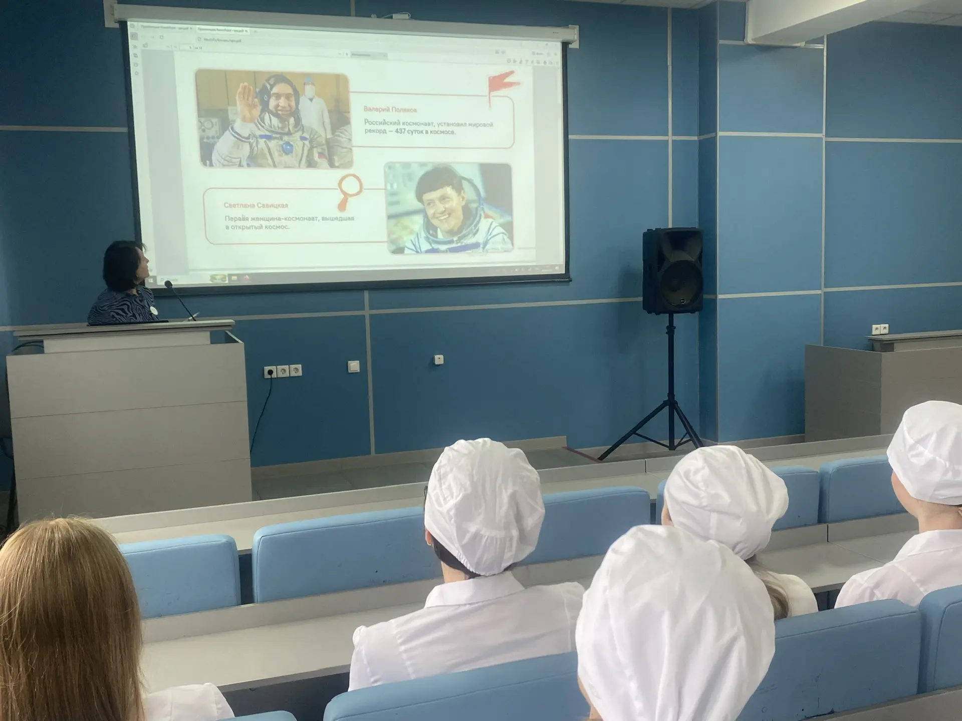 В этот день с обучающимися рассмотрели историю отечественной космонавтики, поговорили о космодромах России, вспомнили имена великих людей, благодаря которым космос стал ближе, узнали, в каких масштабных проектах участвует Россия, благодаря чему сохраняется наше космическое лидерство и почему наличие собственной спутниковой системы важно для суверенитета государства. Кроме этого, обсудили качества, которыми должен обладать космонавт, чтобы выполнять поставленные задачи и работать в сложных условиях, а также выяснили, какие трудовые специальности задействованы в эксплуатации космодромов.