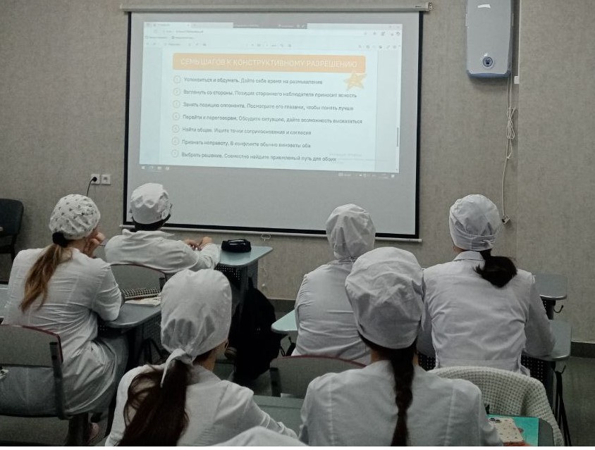 В преддверии Дня психолога, 17 ноября во Владимирском базовом медицинском колледже проведены занятия из цикла «Разговоры о важном» на тему «Как решать конфликты и справляться с трудностями?». Цель уроков заключалась в расширении представлений обучающихся о причинах возникновения конфликтов и возможностях их конструктивного разрешения; стимулирование мотивации к выстраиванию позитивных, основанных на взаимопонимании взаимоотношений с людьми; развитие у обучающихся способности к преодолению трудностей, навыков анализа, саморегуляции и ассертивности; информирование о современных возможностях получения профессиональной психологической помощи в трудных жизненных ситуациях. В ходе уроков с обучающимися рассмотрели естественные элементы развития общества и человеческих взаимоотношений – конфликты и трудности, разобрали причины конфликтов и выяснили важные условия их конструктивного разрешения.