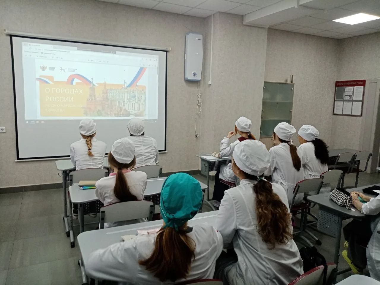 20 октября 2025 года во Владимирском базовом медицинском колледже состоялись очередные занятия из цикла «Разговоры о важном» на тему «О городах России. Ко Дню народного единства». Цель данных занятий заключается в формировании представлений обучающихся о значимости единства народов России, многообразии и богатстве историко-культурного наследия страны, современных тенденциях развития городов и комфортной городской среды; осознании необходимости вклада каждого человека в благополучие и процветание родного края, а также в формировании ответственной и активной жизненной позиции.