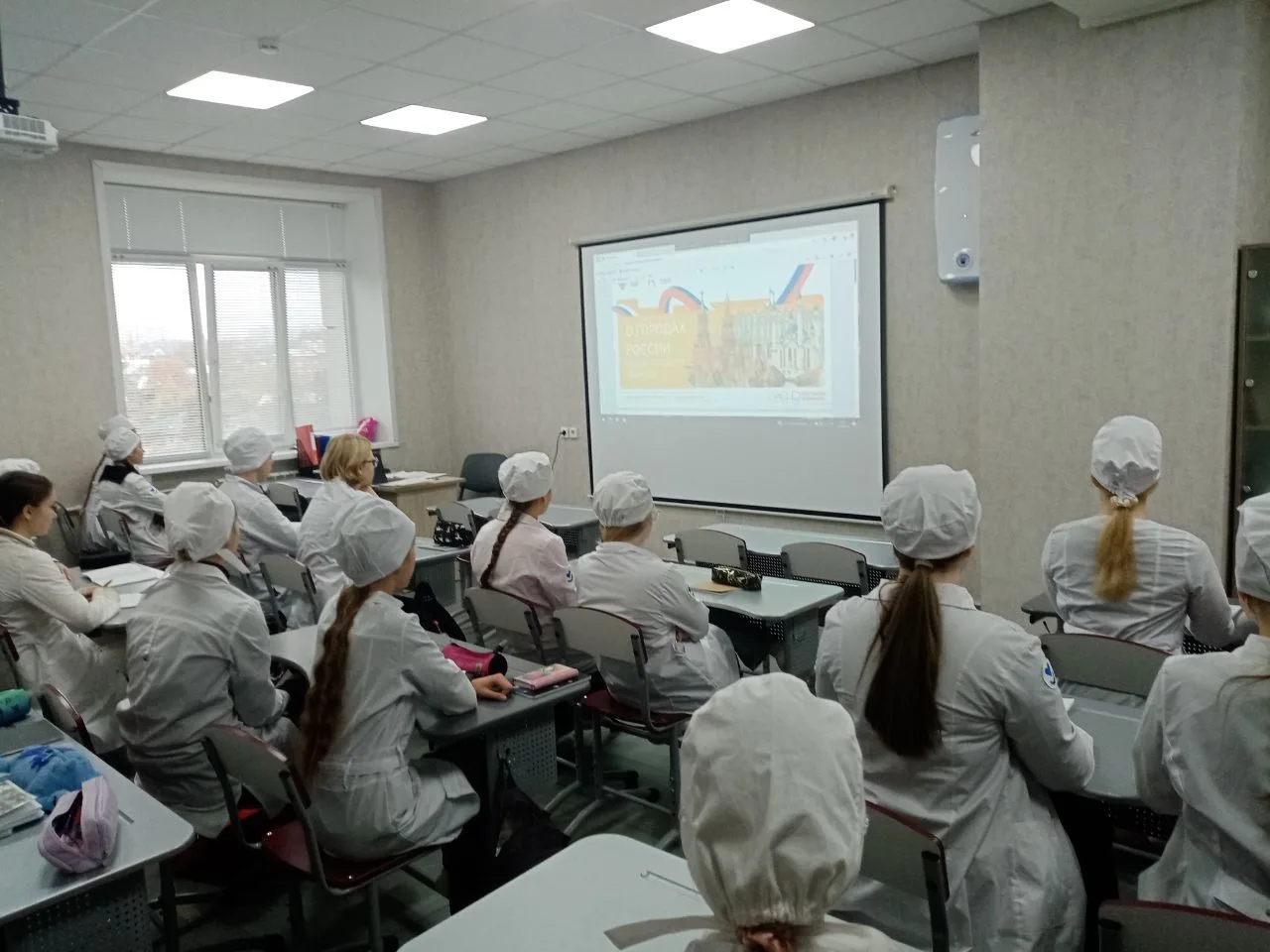 В ходе уроков студенты обсудили причины празднования Дня народного единства и поговорили об исторических событиях, напоминающих нам о том, что сила России заключена в единстве. Рассмотрели города России с точки зрения воплощения этнокультурного многообразия и многонационального единства нашей страны, неразрывной связи прошлого, настоящего и будущего, а также познакомились с культурным разнообразием народов России и уникальными отечественными достижениями.