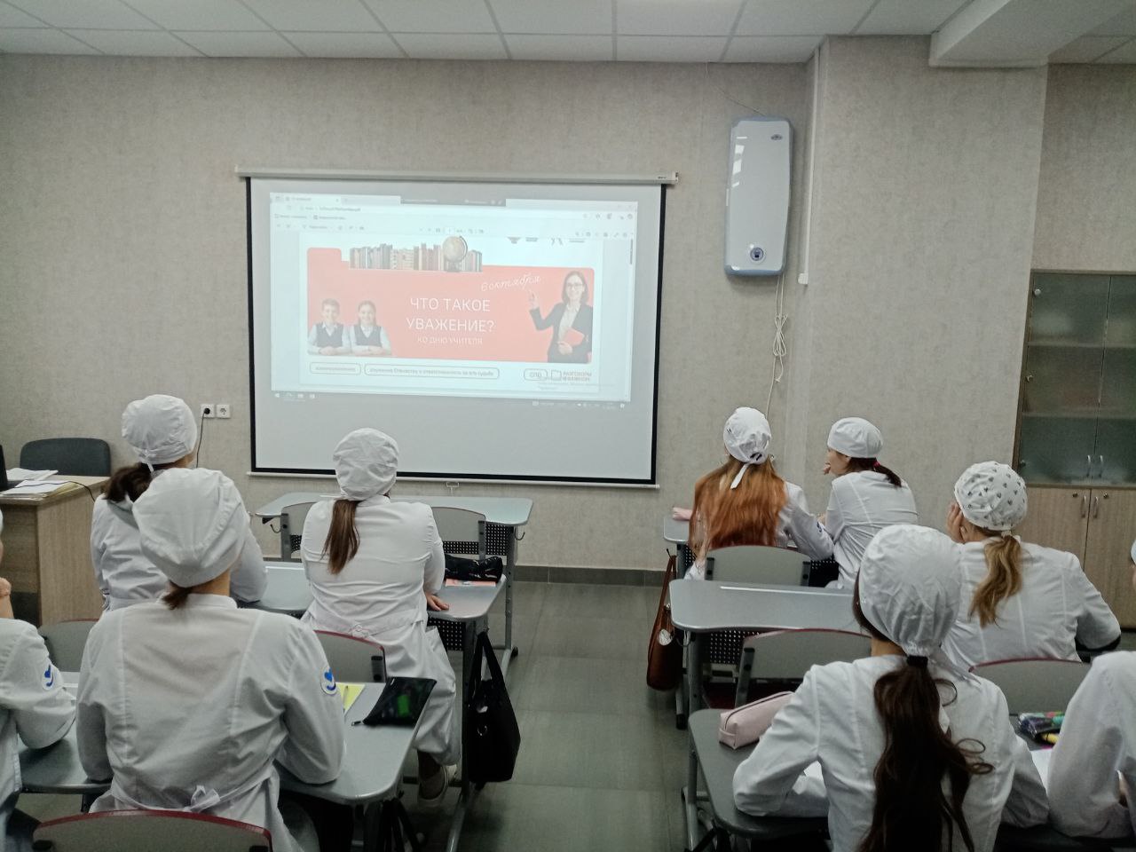 27 октября 2025 года во Владимирском базовом медицинском колледже состоялись очередные занятия из цикла «Разговоры о важном», посвященные значимости уважения как основного принципа взаимоотношений между людьми. В ходе занятий участники обсудили важность уважительного отношения в современном обществе. Ключевой акцент был сделан на проявлении уважения в повседневной жизни: в семье, колледже и будущем профессиональном коллективе. В этот день обучающиеся усвоили, что уважения достоин каждый человек, а способность признавать ценность другого, принимать его особенности и отличия является одним из основных признаков зрелого и ответственного поведения.