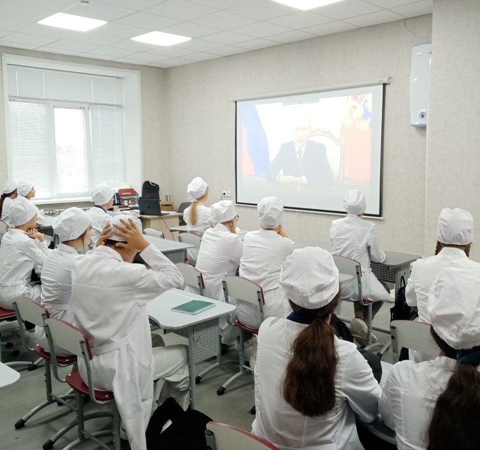 В ходе занятий студенты просмотрели поздравление с Днём знаний Президента Российской Федерации Владимира Владимировича Путина, обсудили, зачем нужны знания, как учеба помогает раскрывать способности, строить планы и стремиться к мечте.