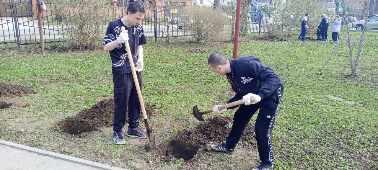 Субботник на территории учебного корпуса колледжа по улице Михайловской