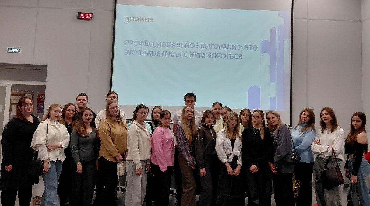 В рамках направления «Медицина» обучающиеся прослушали лекцию на тему «Профессиональное выгорание: что это такое и как с ним бороться». В ходе лекции студенты узнали, что такое профессиональное выгорание, к чему оно приводит, почему важно вовремя распознать его симптомы, а также как с ним справиться.