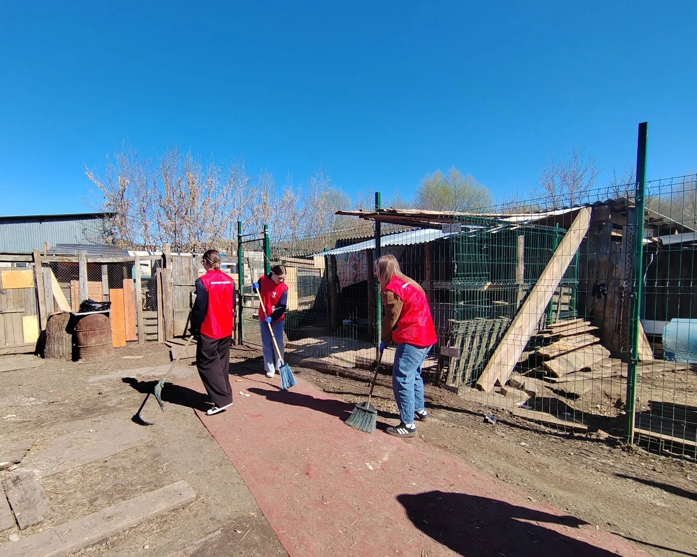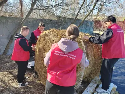Волонтеры-медики из отряда «Рука помощи» привезли корм и подстилки для обитателей приюта. Всё необходимое было собрано силами студентов. Также ребята помогли очистить территорию от мусора и разостлать в вольерах свежее сено.